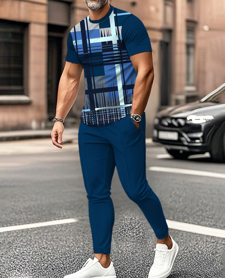 This men's casual two-piece set is the perfect combination of comfort and style, designed for the warmer seasons of spring and summer. Made from a high-quality blend of 100% cotton and polyester, the fabric ensures a soft feel while being breathable and durable for all-day wear. Featuring a bold geometric print, this set offers a unique, modern look that stands out in any casual or sporty setting. The round-neck design and short sleeves provide a relaxed and comfortable fit, ideal for various occasions like casual outings, sports, or weekend get-togethers.