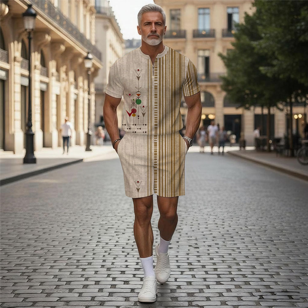 Men's Fashion Casual Round-Neck Geometric Printed Short-Sleeved Two-Piece Set
