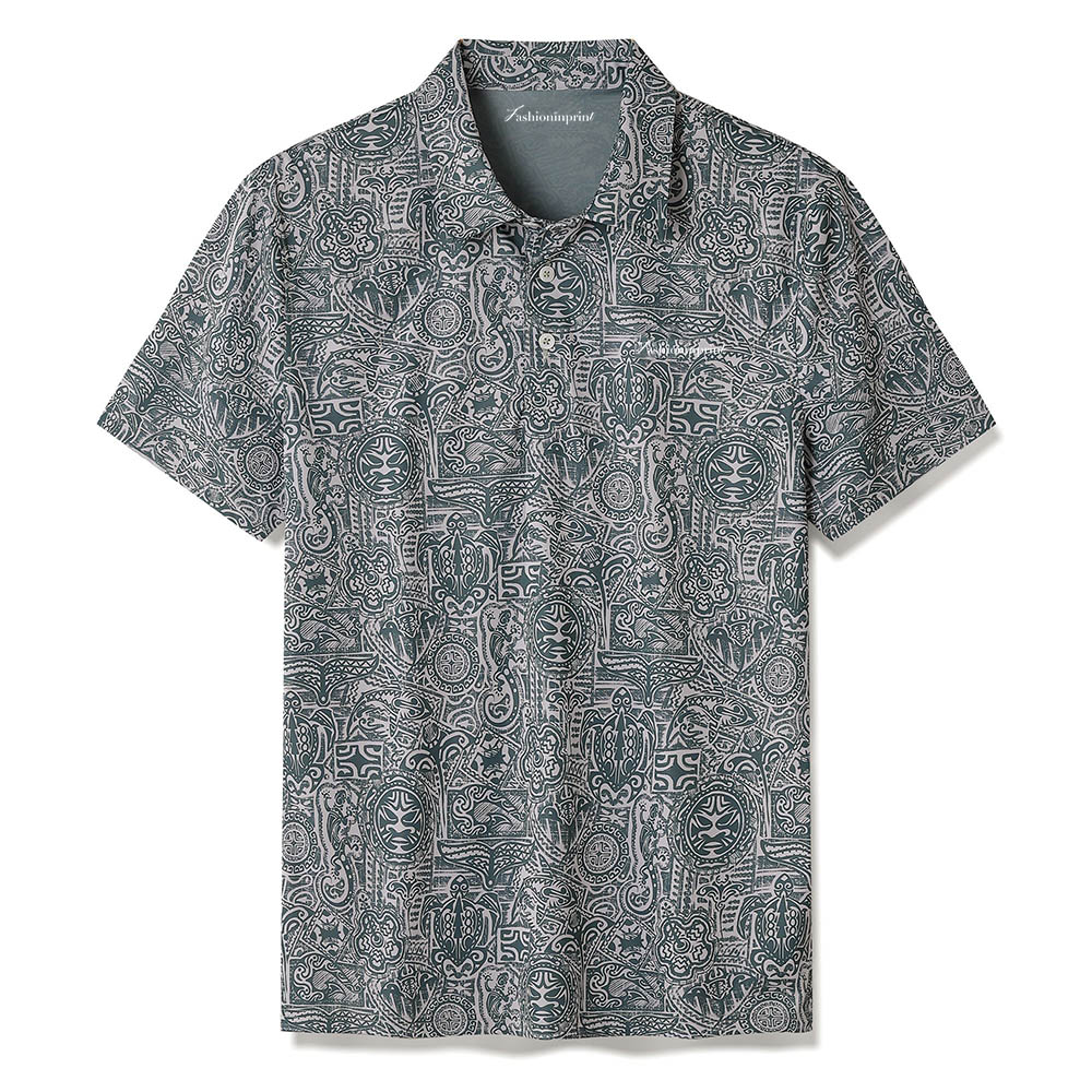 Men's Hawaiian Polo Shirt Guardian Totem Print Short Sleeve Polo Shirt Guardian Totem Polo