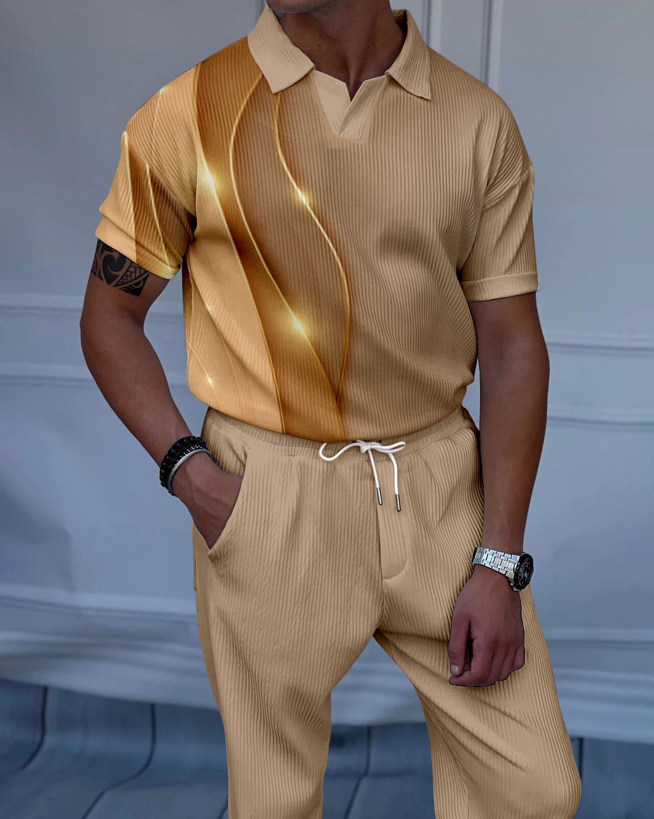 Men's Luxury Casual Textured Polo Short Sleeve Suit - 035