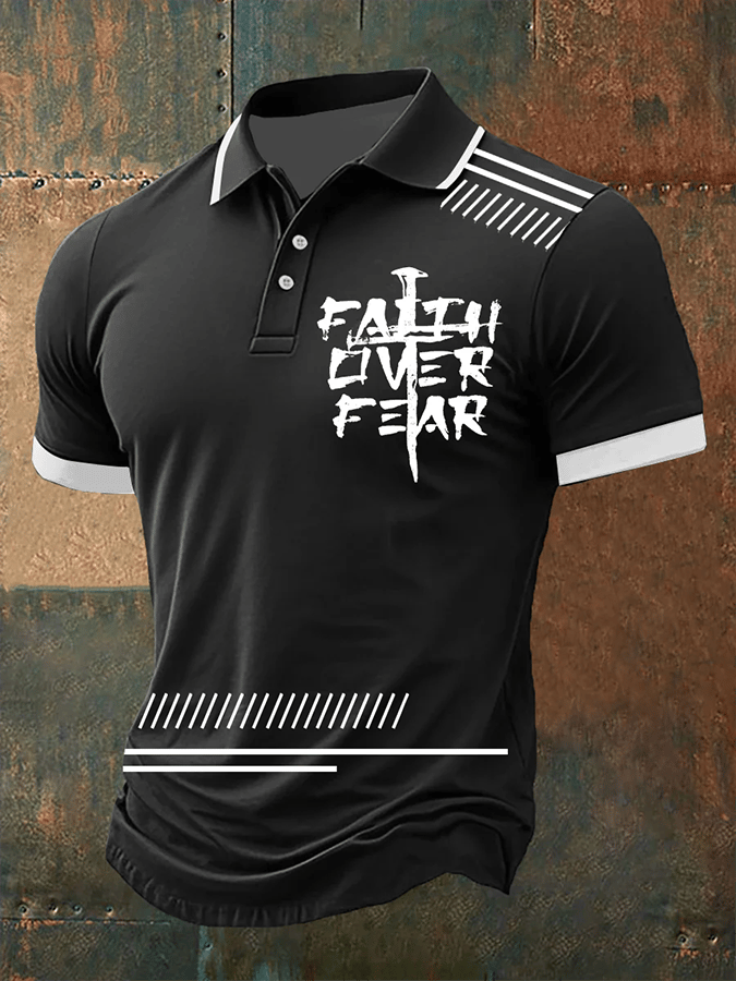 Men's Retro Faith “Faith Over Fear” Casual Printed Polo Shirt