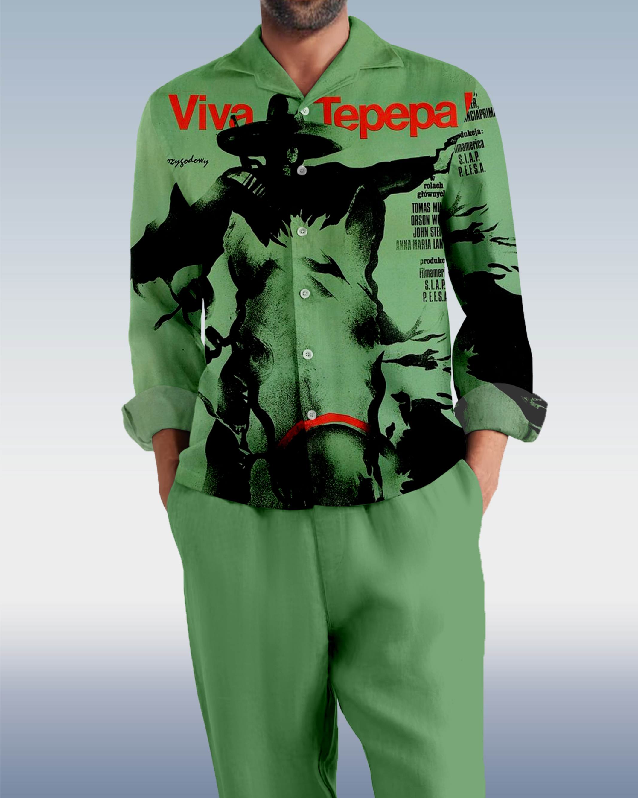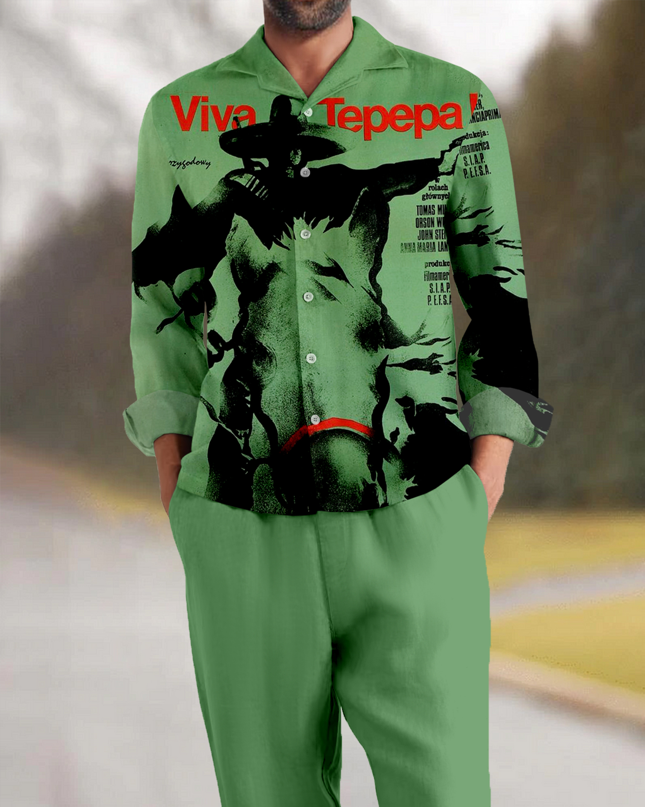 Suitmens Men's Nostalgic Equestrian Pattern Long Sleeve Suit-0009