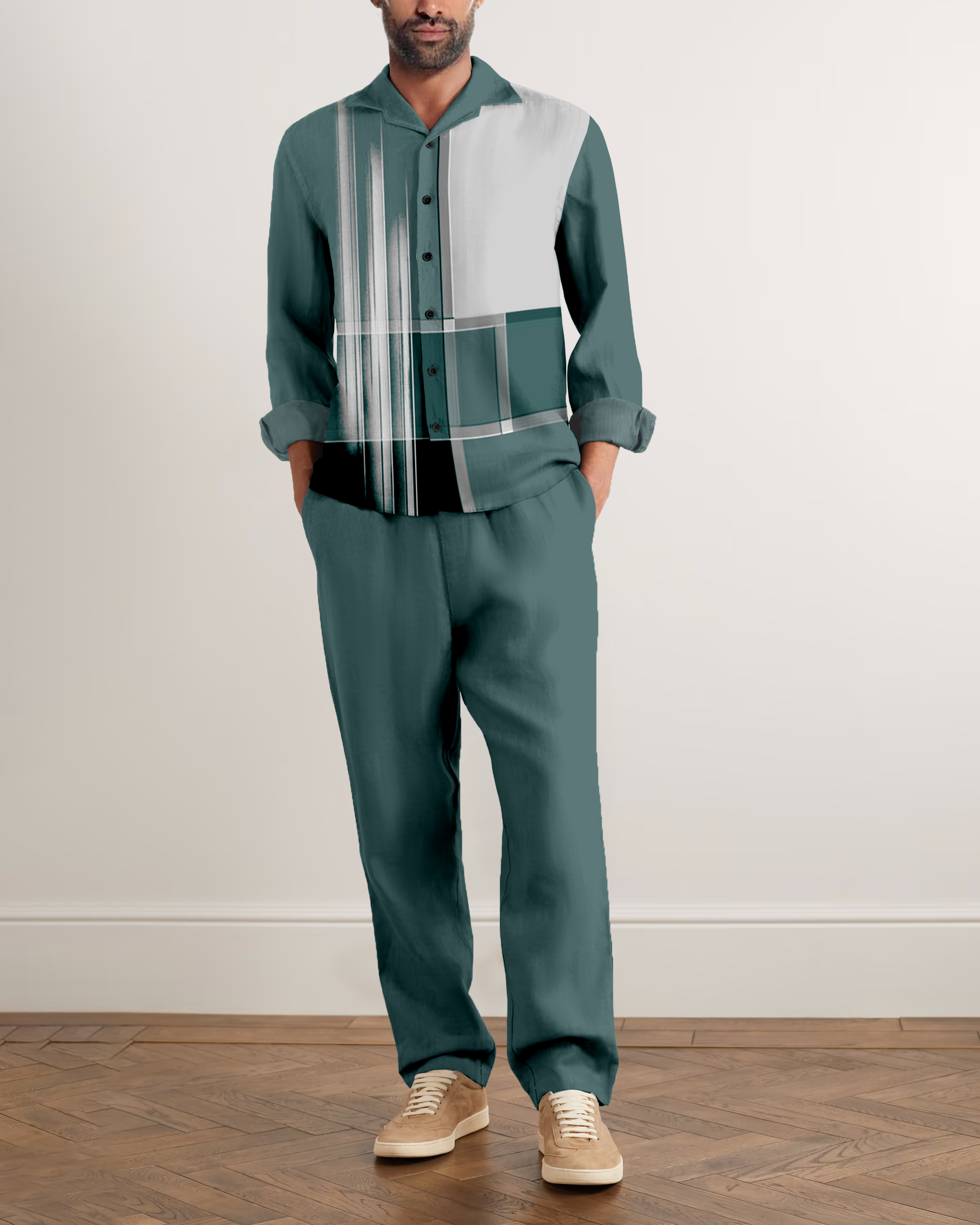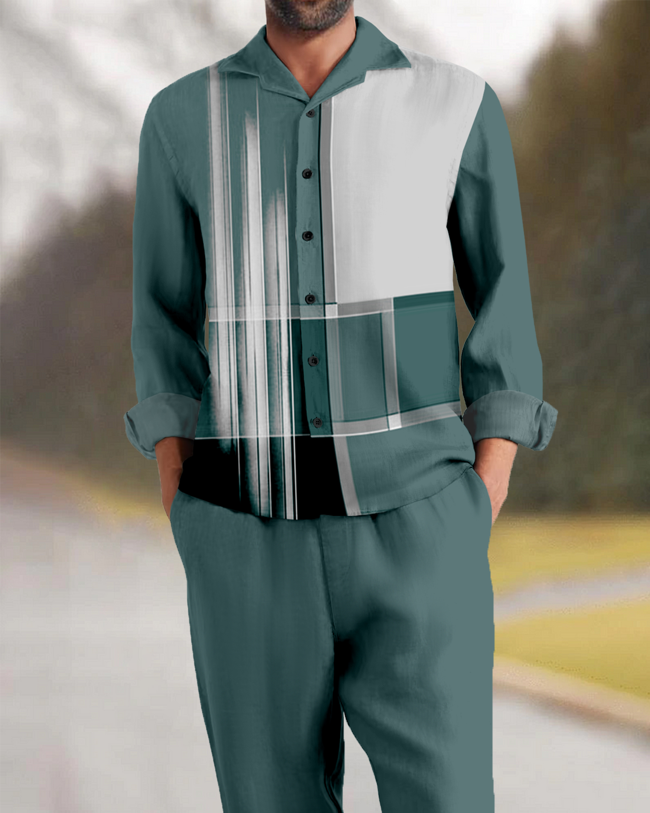 Suitmens Men's Retro Geometry Long Sleeve Walking Suits-0138