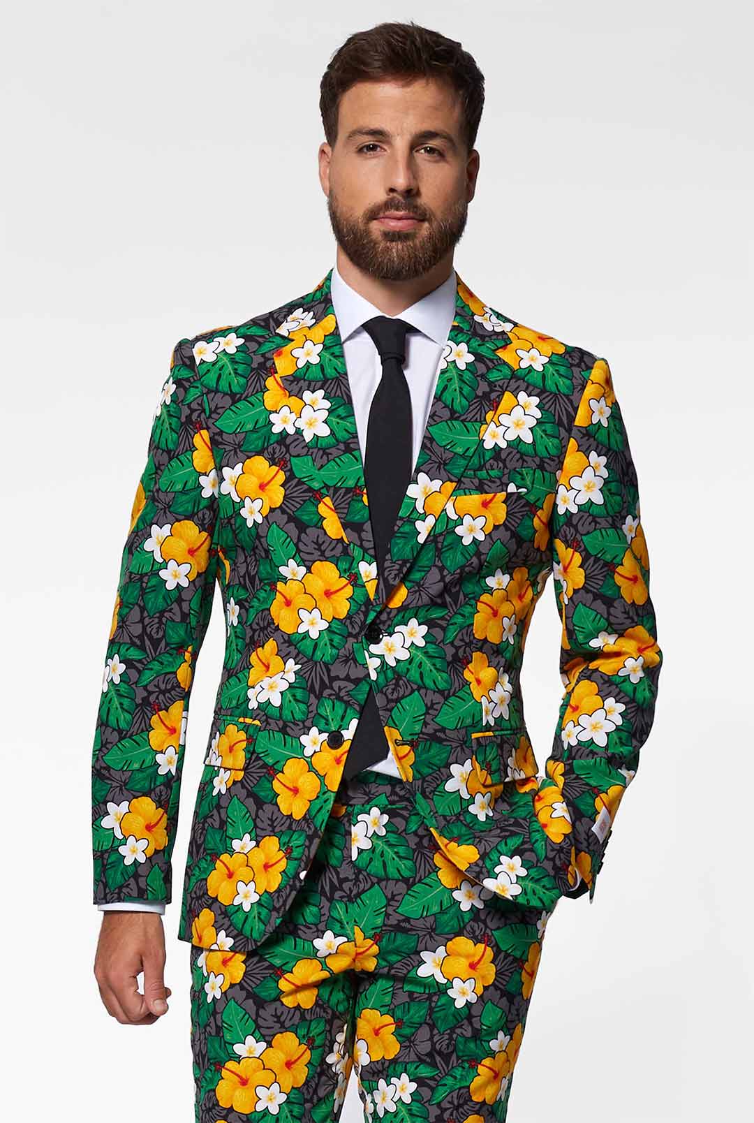 Can you already feel the warm sand underneath your feet and hear the waves break on the beach? This tropical suit is a fresh take on the classic Hawaiian shirt and brings tropical island vibes with you wherever you go; no matter the weather. So, say aloha, put your out-of-office message on and slip into this ultimate tropical suit.