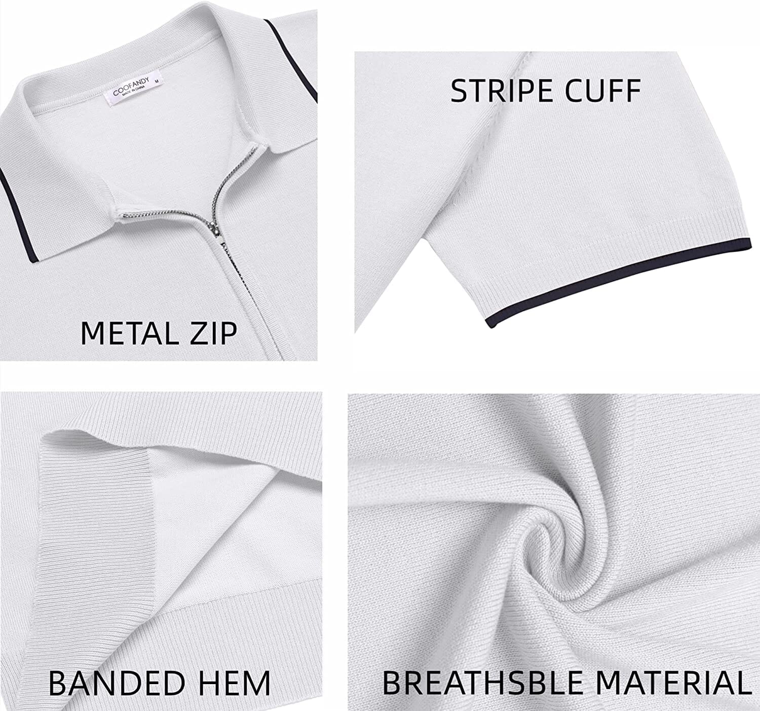 MEN'S KNIT POLO SHIRT: Coofandy men's polo shirt designed with delicate 1/4 metal zipper, stripe, knit, turndown collar,high elastic banded cuffs and hem can made you feel stylish and modern.