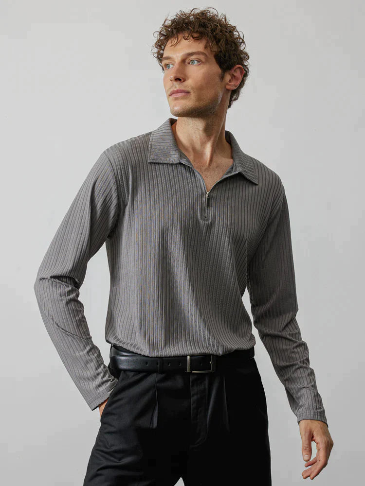 Coofandy Zipper Stripe Long Sleeve Polo Shirt