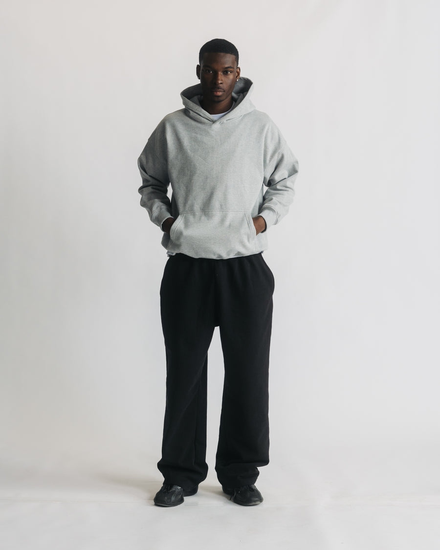 Made in our new upgraded 480 GSM cotton fabric, this grey hoodie features a street inspired look with drop shoulders.