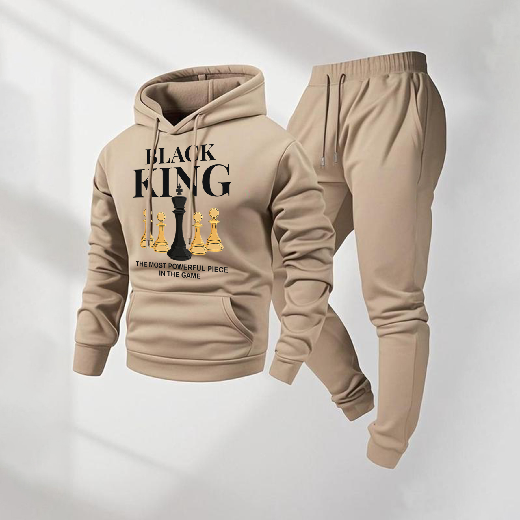 Men's Black King Letter Pattern Print Hoodie and Drawstring Sweatpants Set, Menswear, Casual Athletic Long Sleeve Hooded Jacket & Trousers for Fall & Winter, Men's Clothing for Daily Wear, Sportswear Indoor Outdoor, Tracksuit, Athleisure