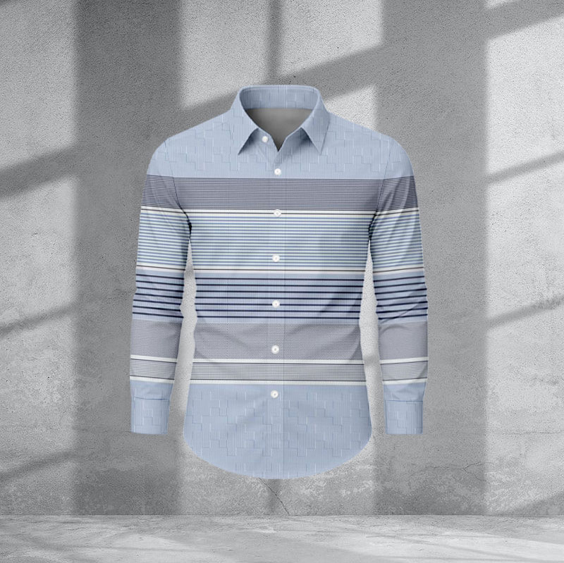 Men's Casual Blue Color Matching Striped Print Long-Sleeve Shirt