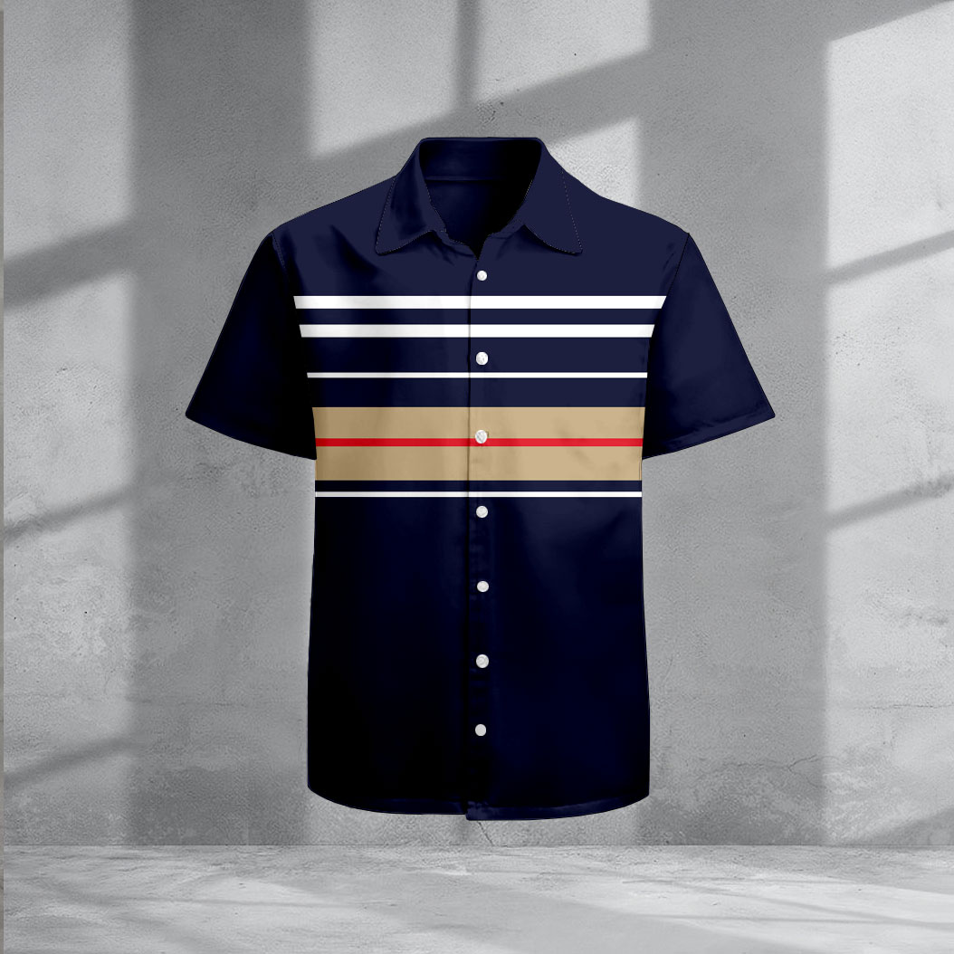 Men's Casual Navy & Khaki Color Matching Striped Print Short-Sleeve Shirt