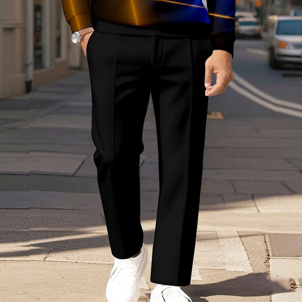 Men's Casual Colored Ligh Printed Polo-Collar Zipper Long Sleeved Trousers Two-Piece Set