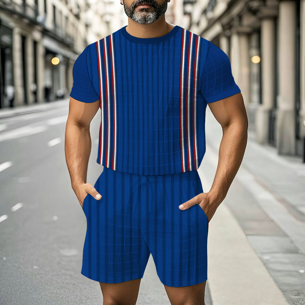 Men's Casual Round-Neck Geometric Printed Short-Sleeved Fashion Two-Piece Set