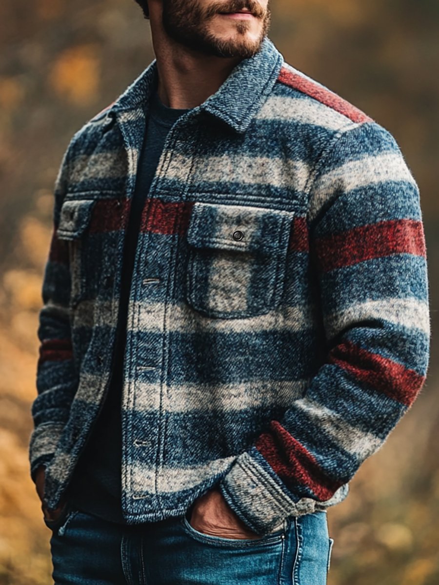 Men's Casual Stripe Long Sleeve Jacket