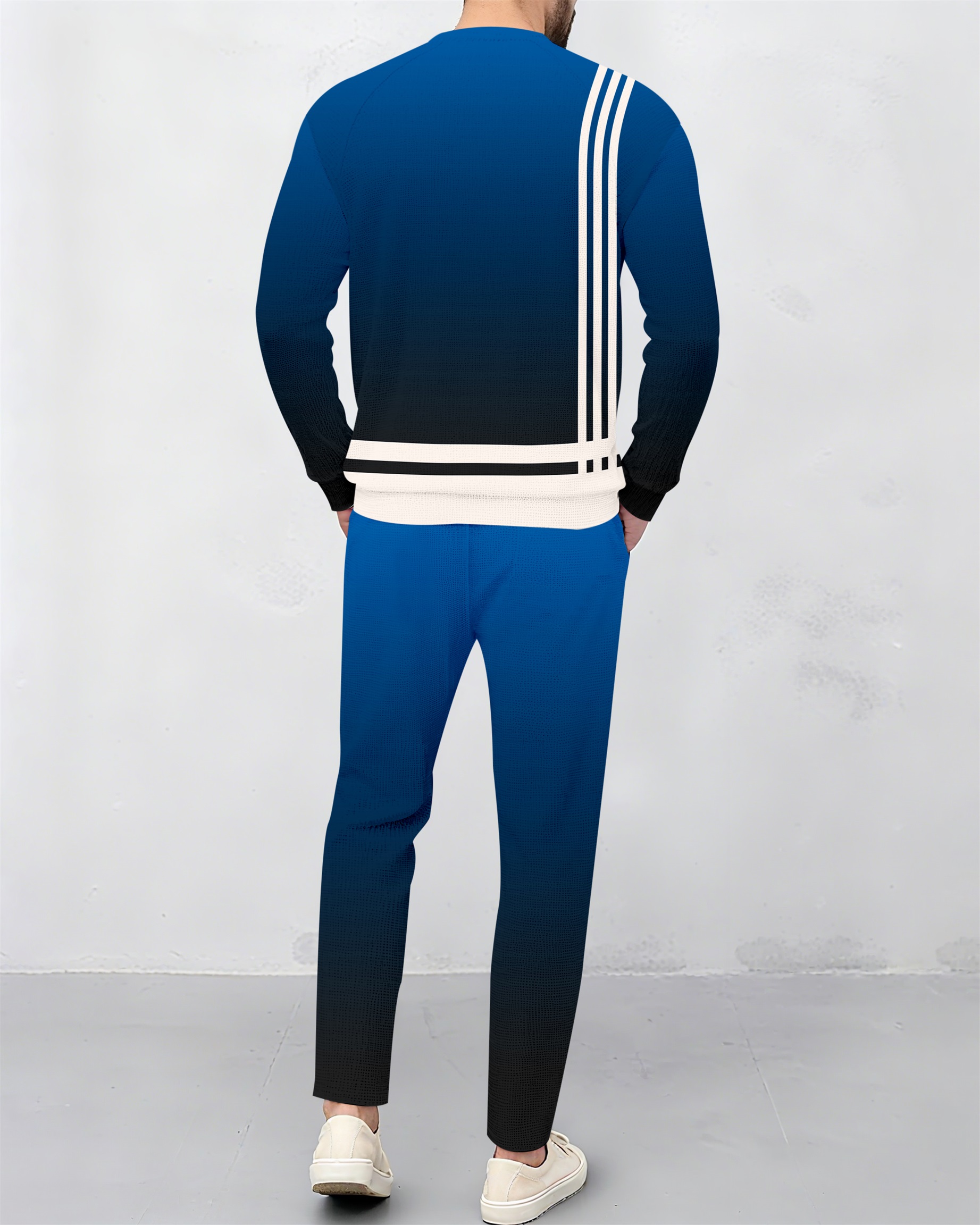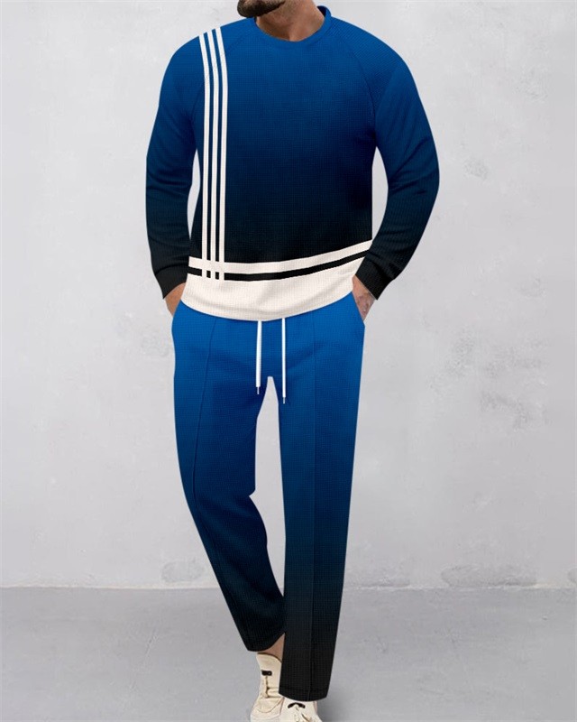 Men's Color-Blocked Waffle Round Neck Casual Sports Set 0508