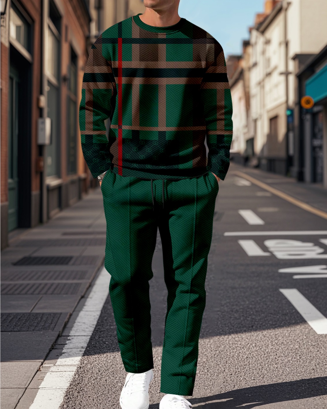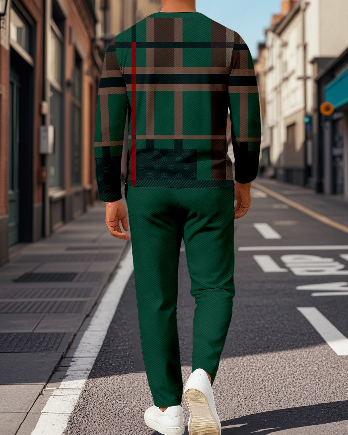 Men's Colorblock Printed Textured Long Sleeve -Sleeved Trousers Suit 036