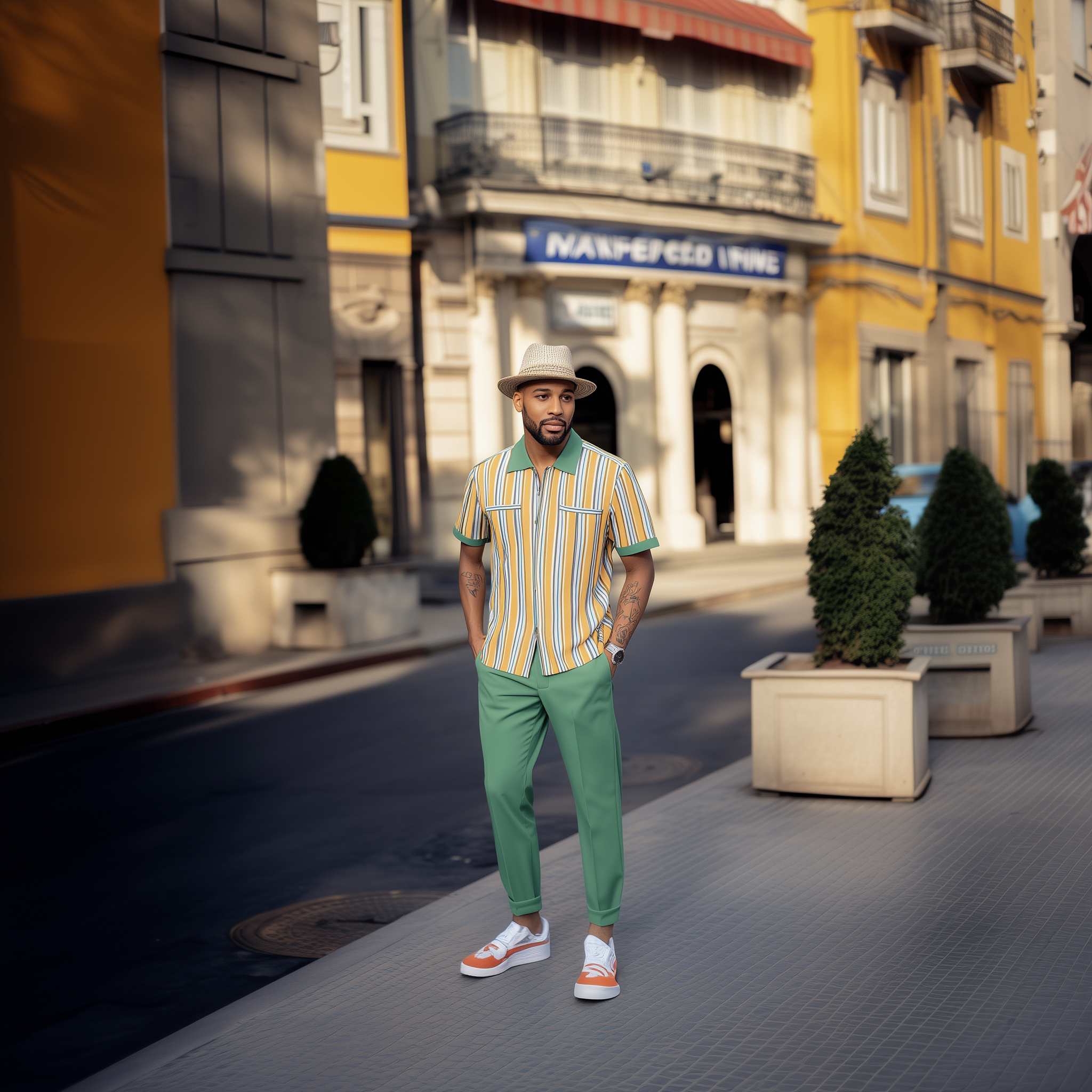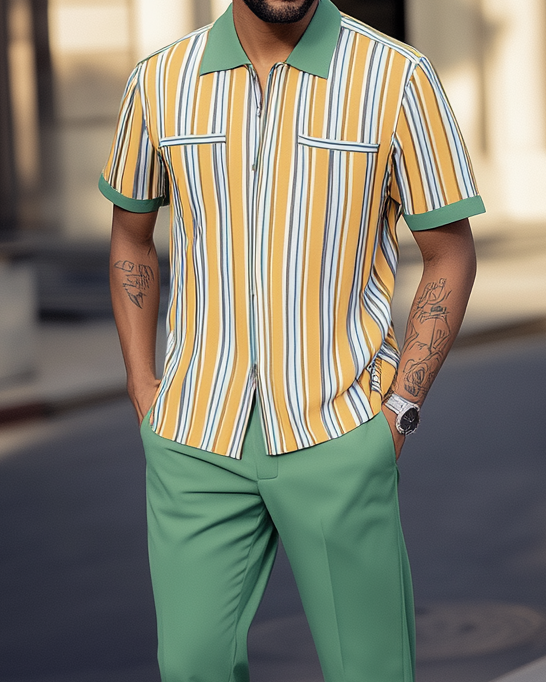Men's Colorblock Retro Short-Sleeved Walking Suit 0746