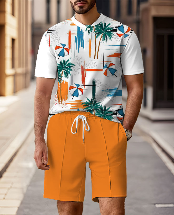Men's Fashion Casual Round-Neck Geometric Printed Short-Sleeved Two-Piece Set