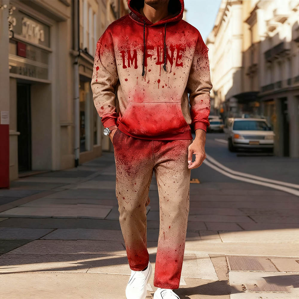 Men's Halloween Color Matching Printed Long Sleeved Hoodies Trousers Two-Piece Set
