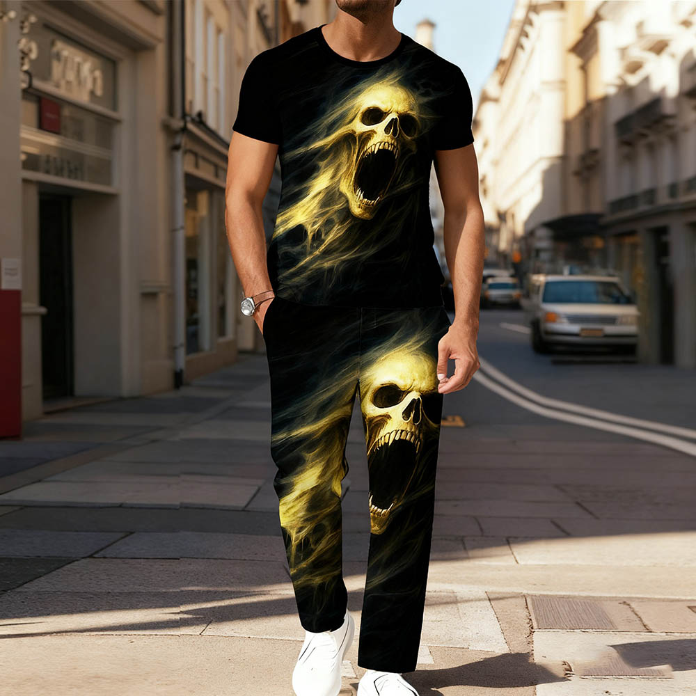 Men's Halloween Color Matching Printed Short Sleeved Trousers Two-Piece Set