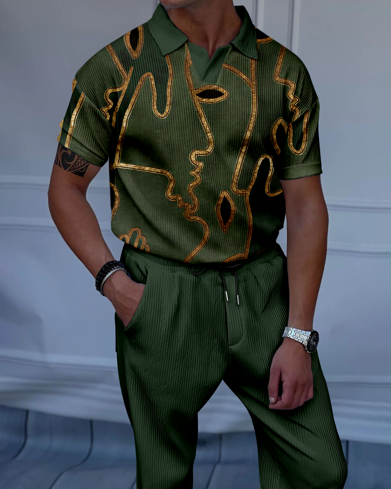 Men's Luxury Casual Textured Polo Short Sleeve Suit - 031