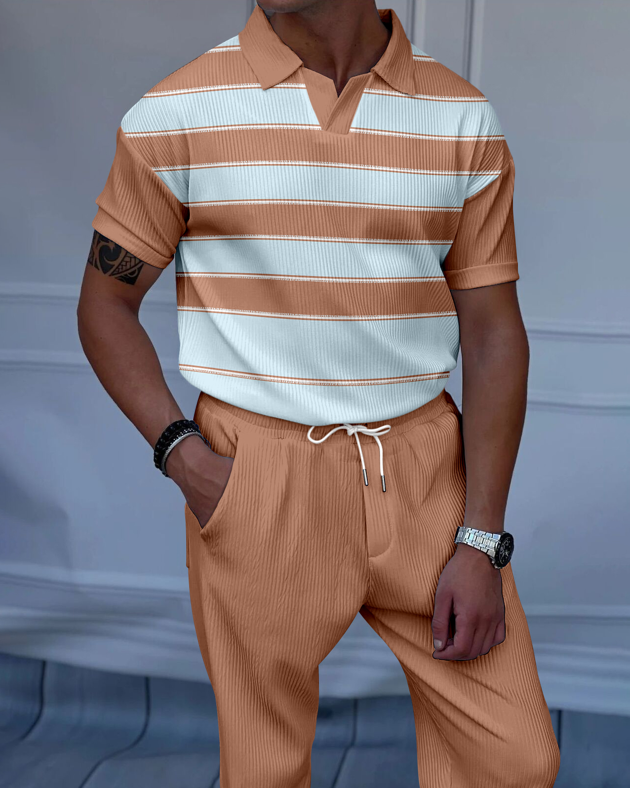 Men's Luxury Casual Textured Polo Short Sleeve Suit - 047