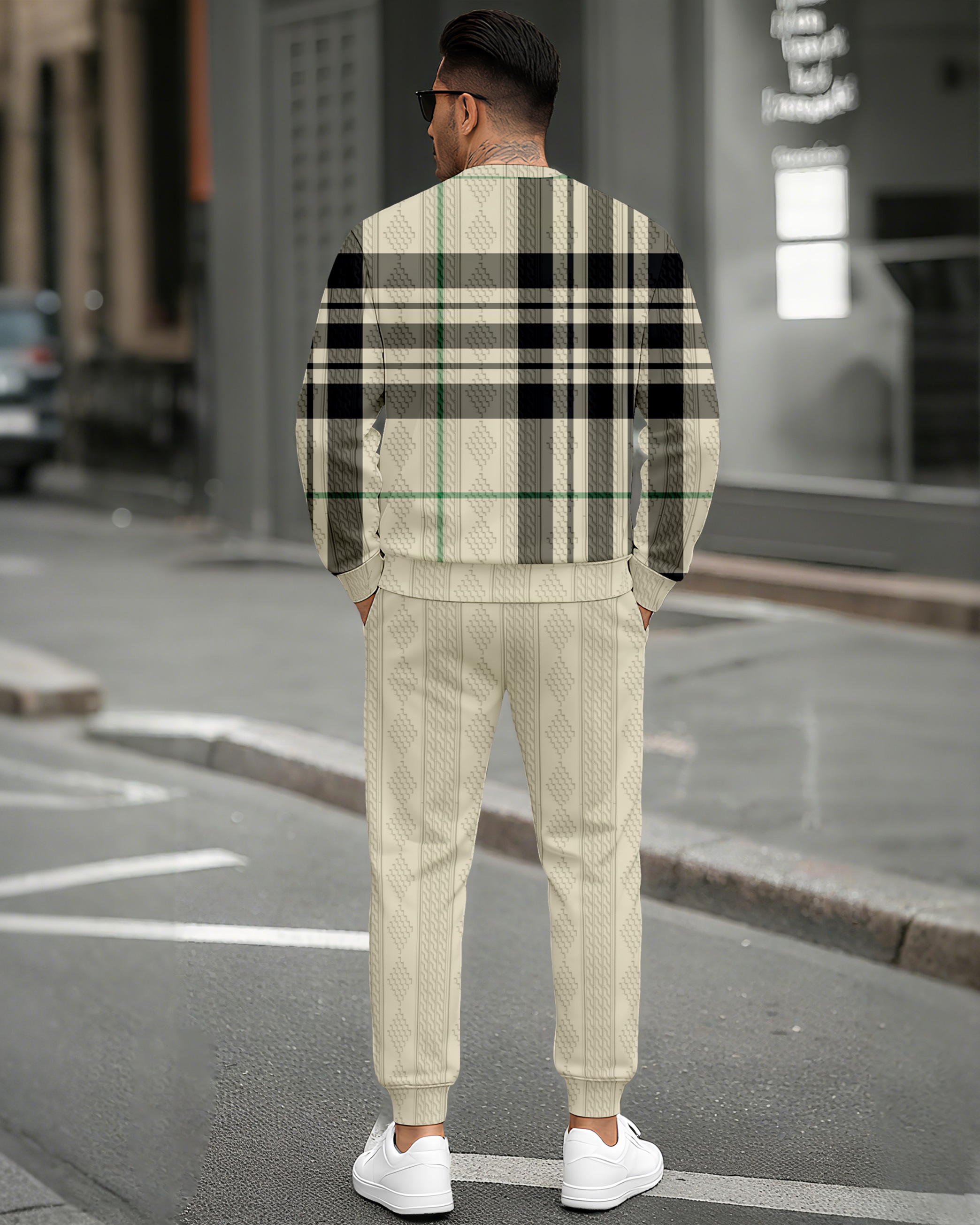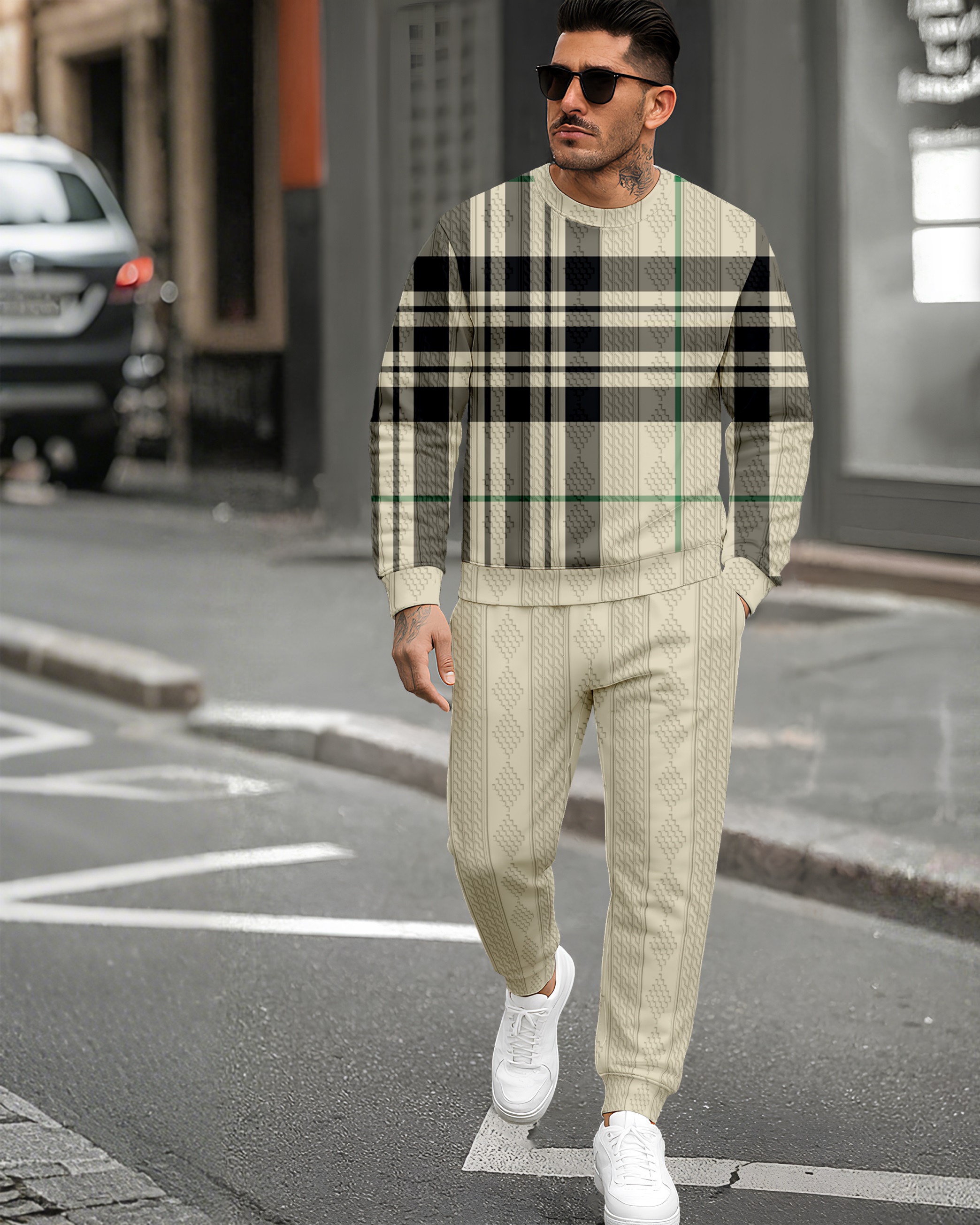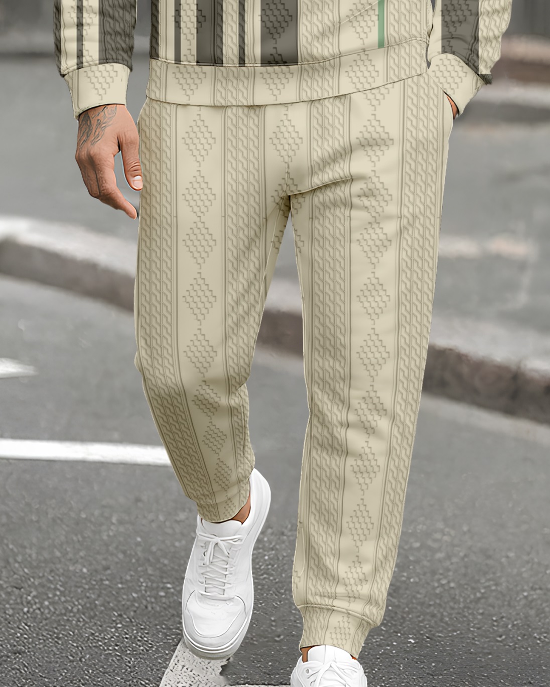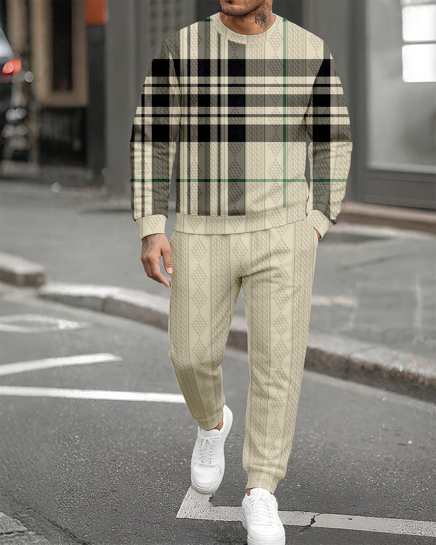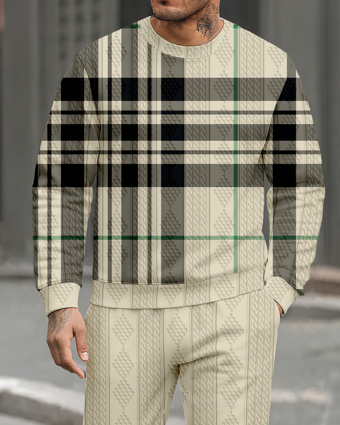 Men's Textured Jacquard Crew Neck Casual Sports Set 089