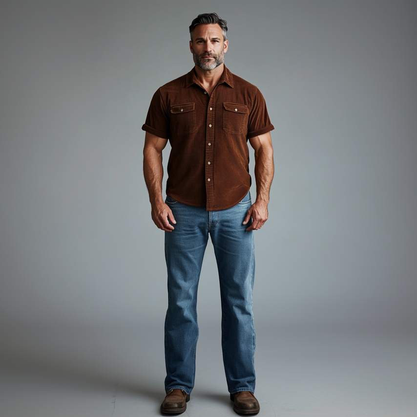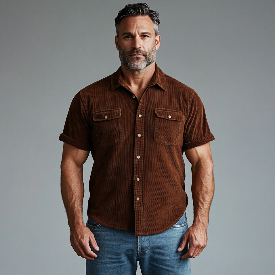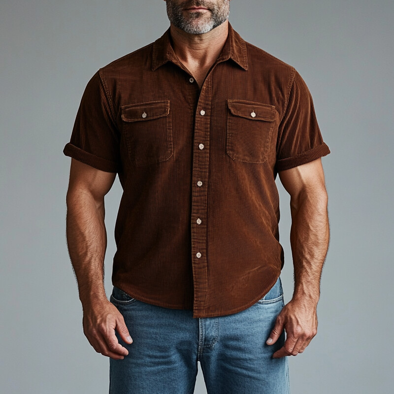 Men's Turndown Collar Button Corduroy Short Sleeve Shirt