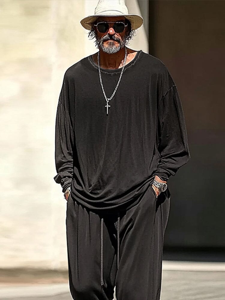 Bottoms: Elastic waistband with adjsutable drawstring, two slant pockets
