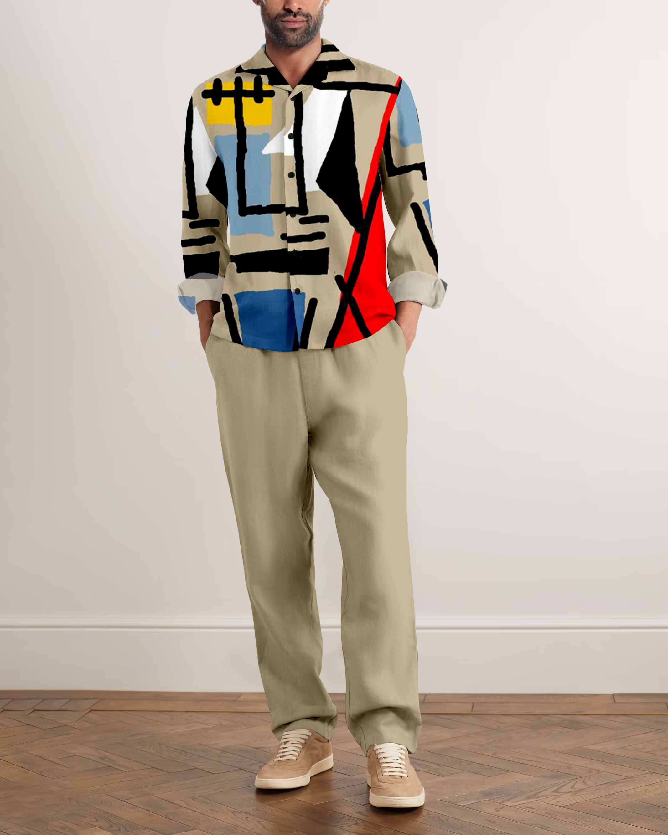 Suitmens Men's Abstract Art Long Sleeve Walking Suits-0050