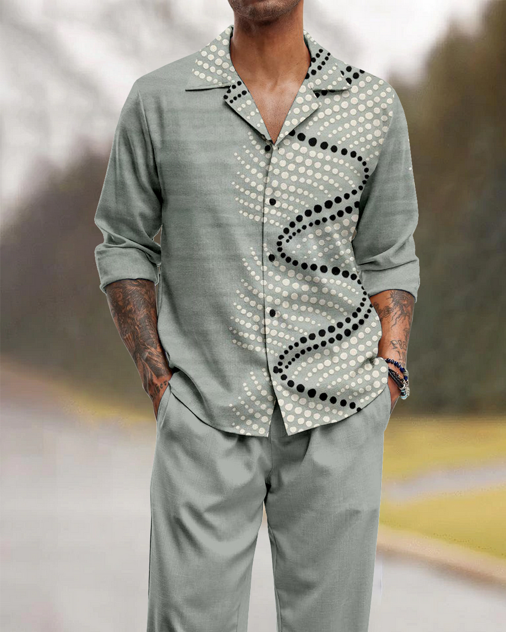 Suitmens Men's Dot Art Long Sleeve Walking Suits-0090