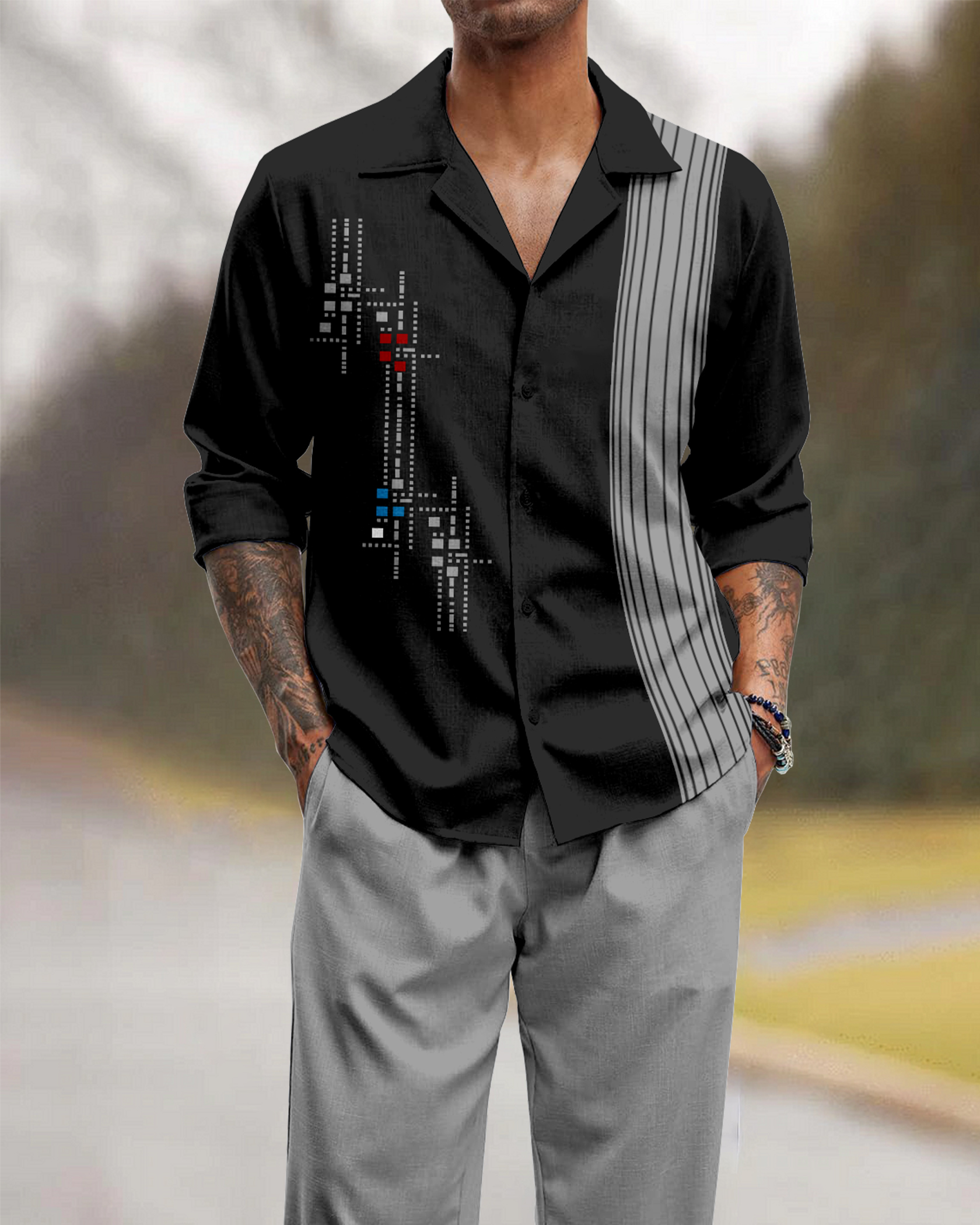 Suitmens Men's Geometric Stripes Long Sleeve Walking Suits-0077