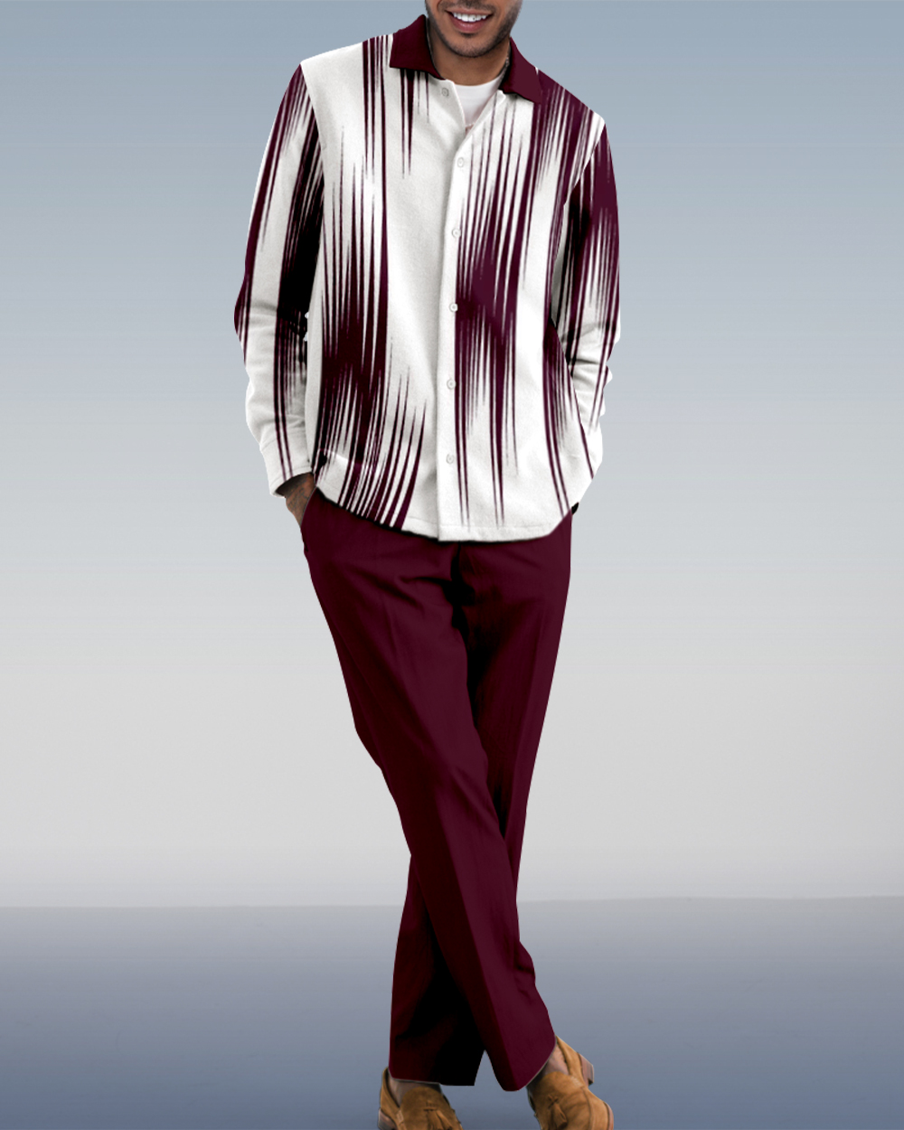 Suitmens Men's Geometry Art Long Sleeve Walking Suits-0073