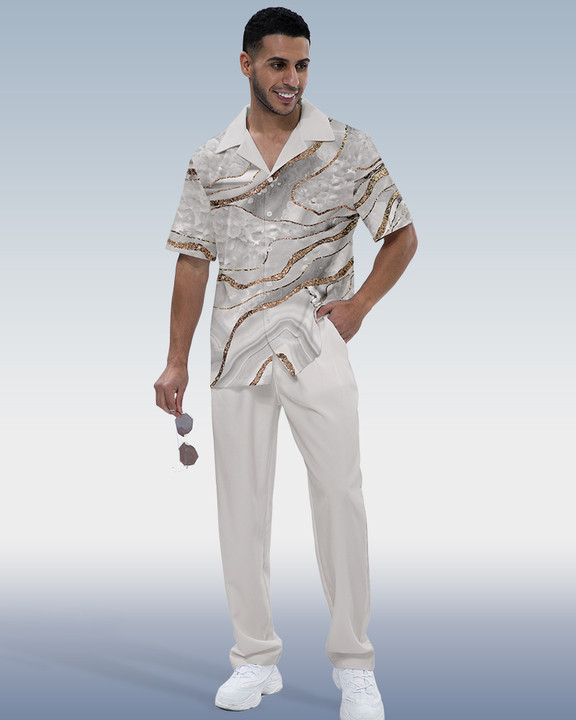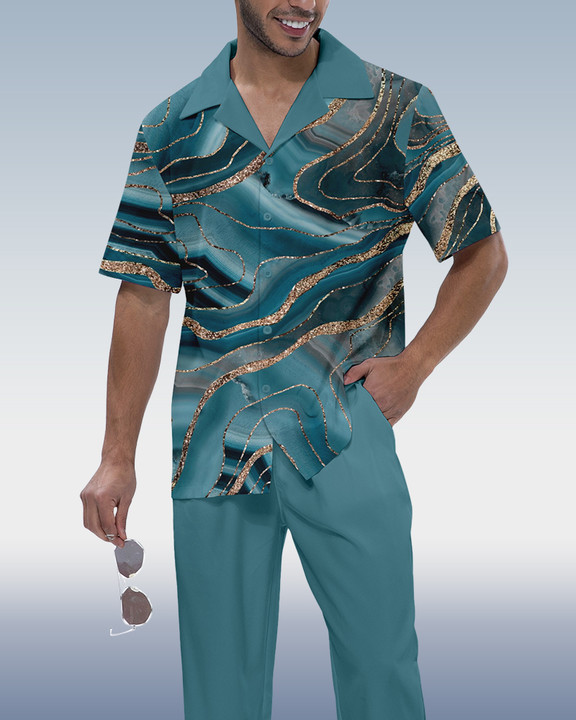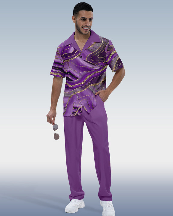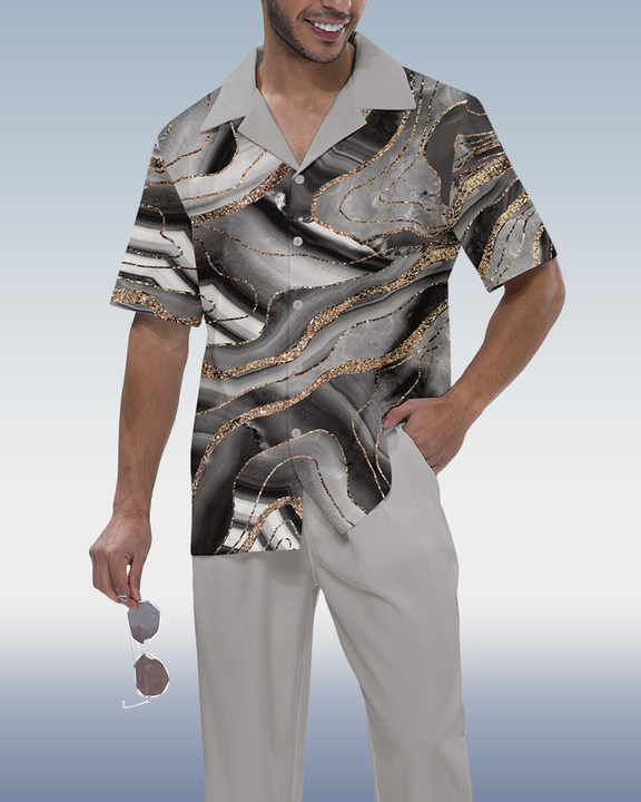 Suitmens Men's Ombre Print Short Sleeve Shirt Walking Set 4 Colors 370