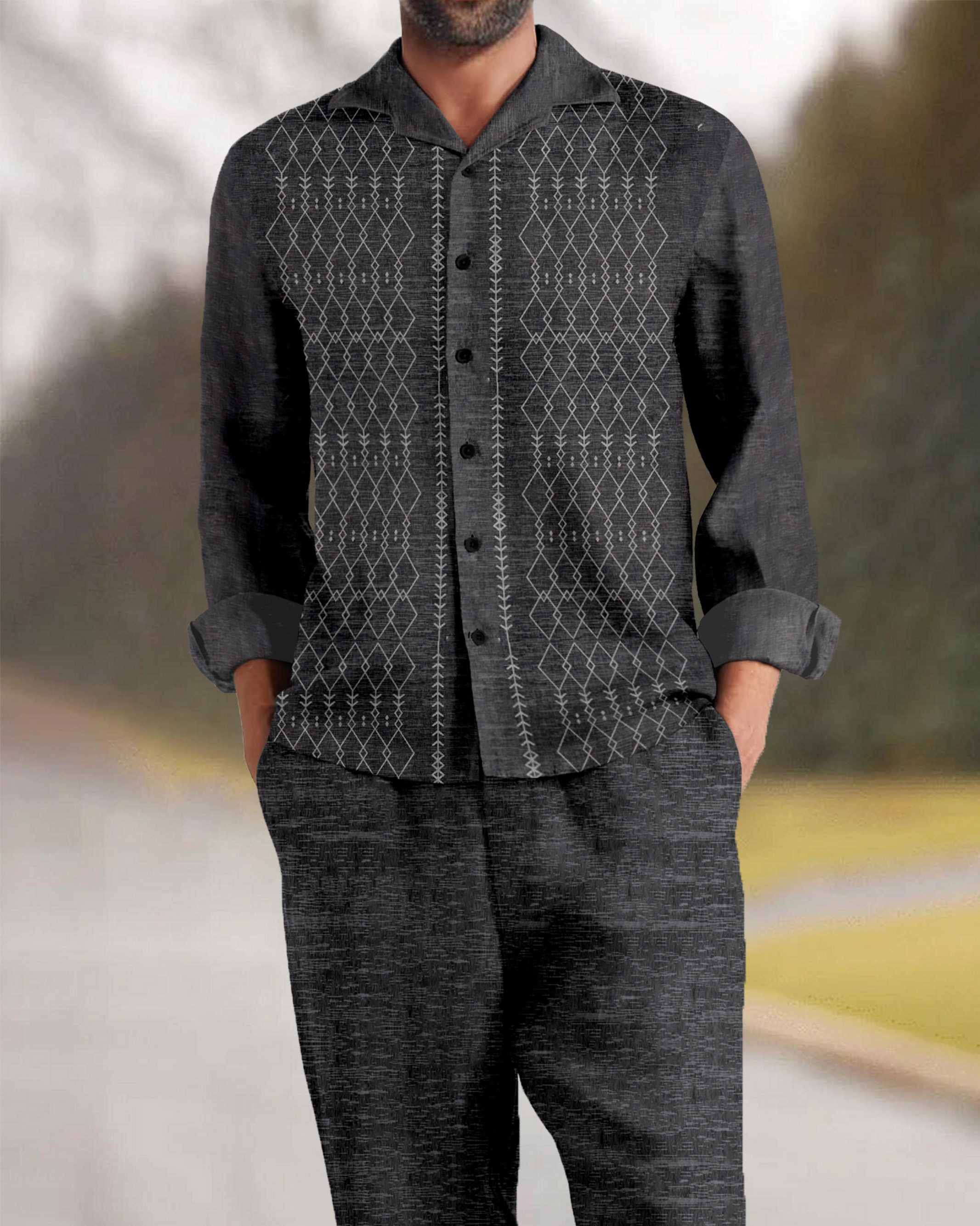 Suitmens Men's Southwestern Style Long Sleeve Walking Suits-0046