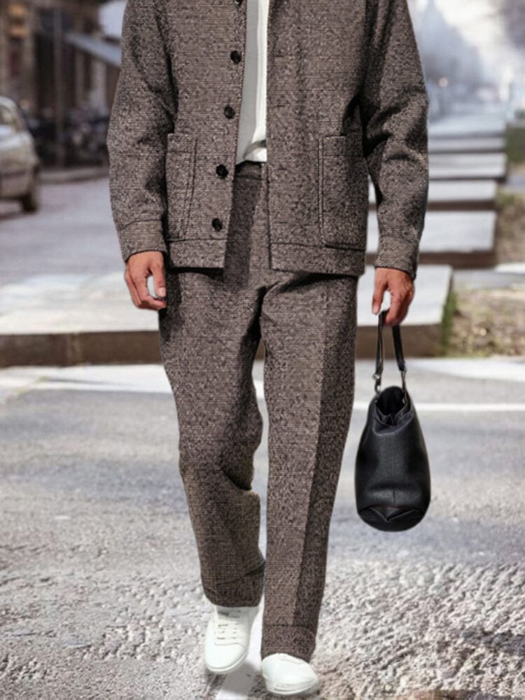 Jacket Details: Button closure, lapel collar, two deep pockets