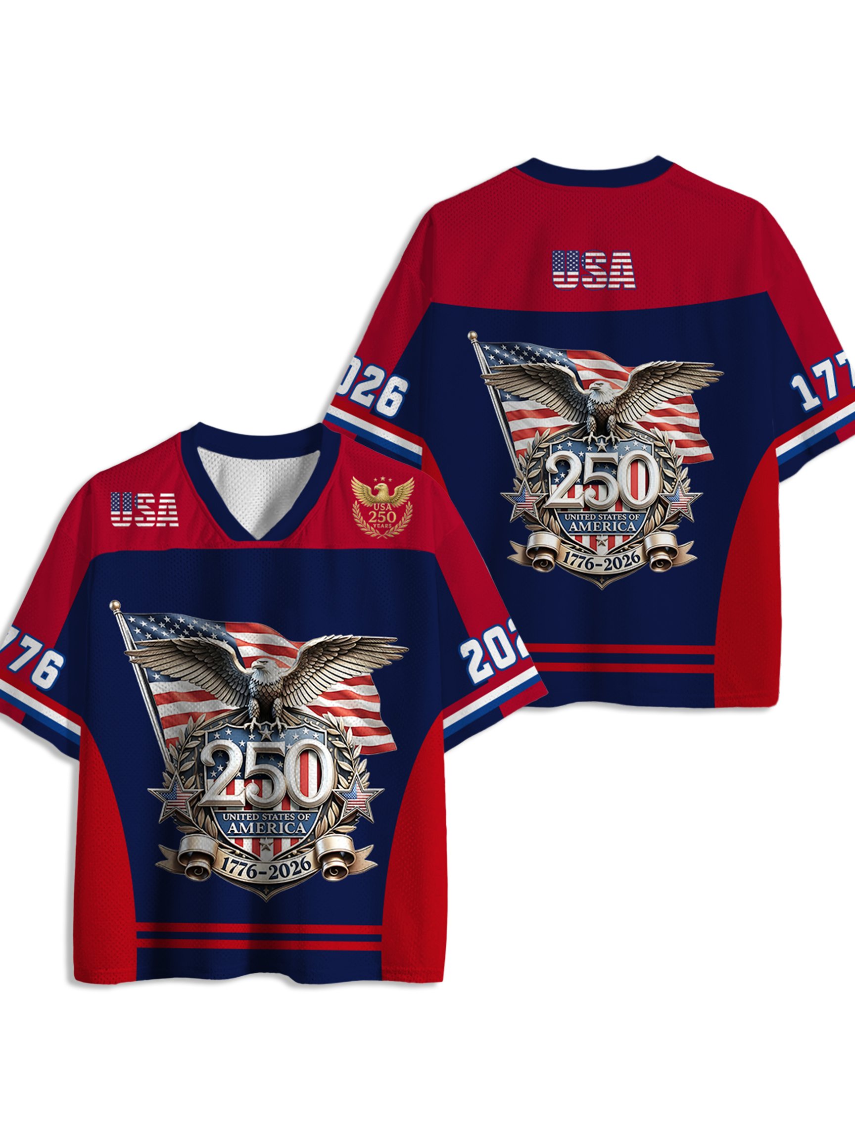 USA 1776 To 2026 American Eagle Patriotic Flag History Anniversary Independence Day 4th of July Print Mesh Jersey Shirt
